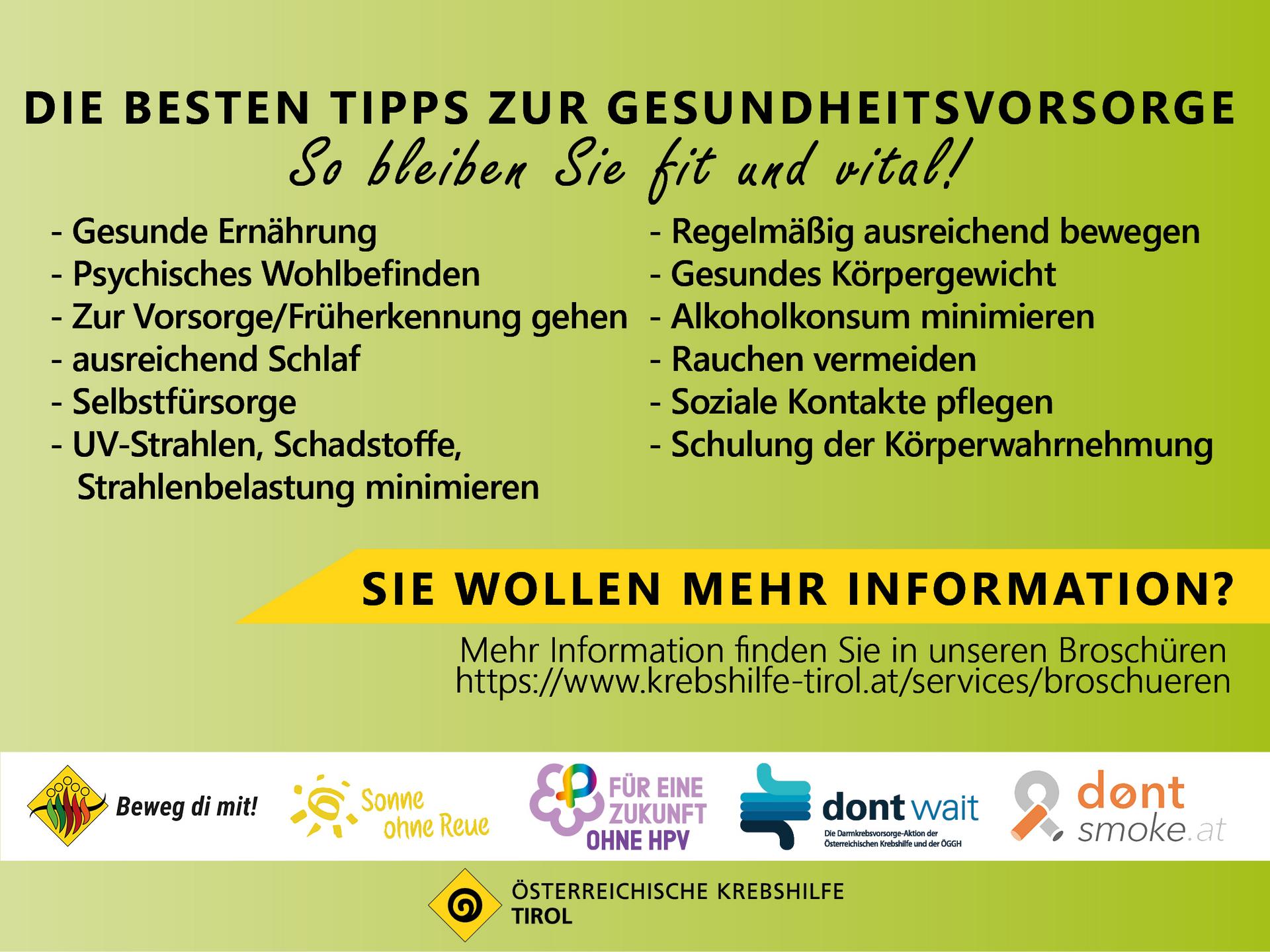 Kontaktieren Sie uns unter 0512/577 768 oder office@krebshilfe-tirol.at
