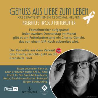 Feinschmecker und Genussmenschen aufgepasst! Jeden zweiten Donnerstag im Monat verwandelt sich der Futterkutter in eine Bühne für außergewöhnliche Kochkunst – und das für einen guten Zweck. Unter dem Motto „Genuss aus Liebe zum Leben“ wird ein exklusives Charity-Gericht von einem prominenten Gastkoch zubereitet. Der gesamte Reinerlös aus dem Verkauf dieses Gerichts geht direkt an die Krebshilfe Tirol.