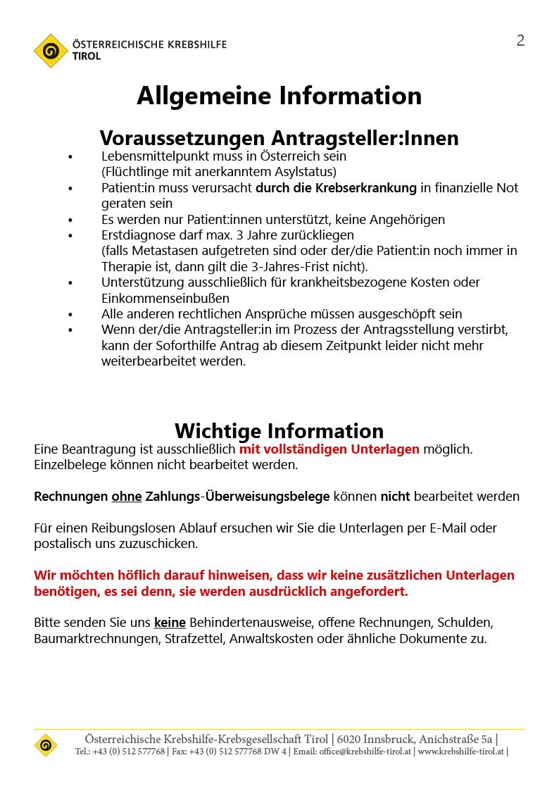- Schriftliche Begründung/Ansuchen (das gemeinsam mit einer Krebshilfe-Beraterin erstellt wird).